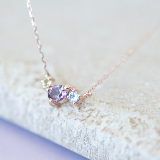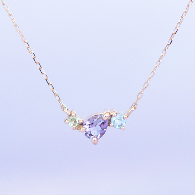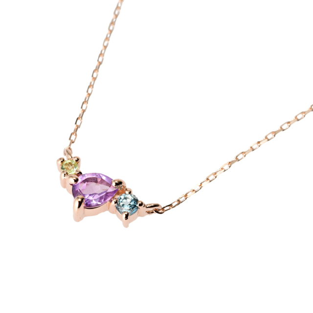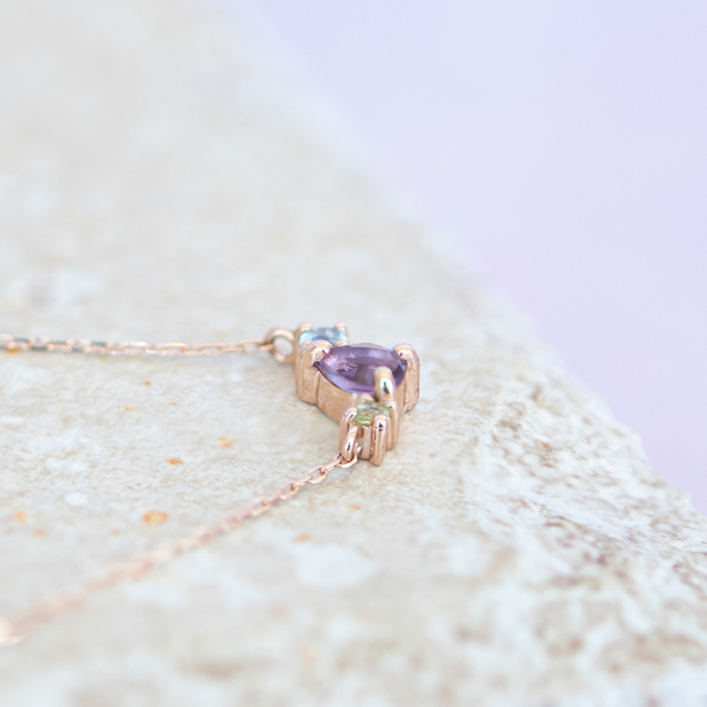 | 【素材】 | K10ピンクゴールド/アメジスト/ブルートパーズ/ペリドット |