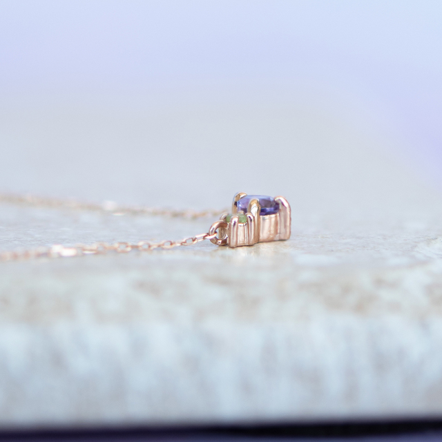 ペアシェイプカットを施したアメジストは、角度を変えるたびきらきらと輝き、優しく肌馴染みのよいK10ピンクゴールド素材と調和させることで、上品でエレガントな雰囲気に。