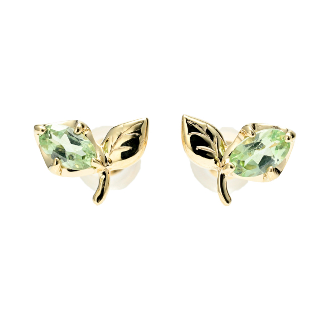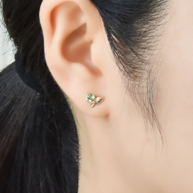 愛らしい双葉のデザインのピアスは、ルースが大きい分発色が良く、爽やかなミントカラーを存分にお楽しみいただけます。