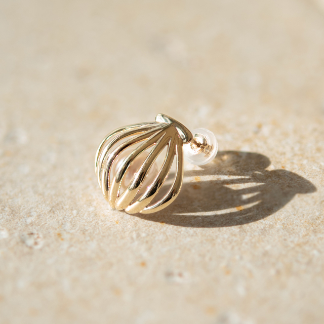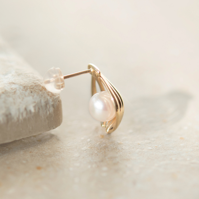 その美しい自然の恵みにインスピレーションを得て、ホタテの貝殻がパールを優しく包み込むようなデザインに仕上げました。