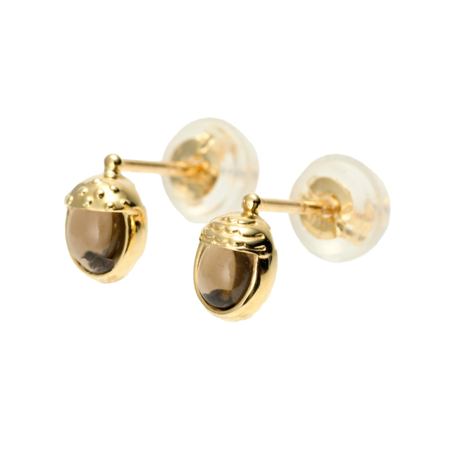 JL HOKKAIDOのどんぐりは、クォーツならではの透明感を持ちながら、奥ゆかしいブラウン、グレー、ブラック...光の加減で変わる表情を楽しめる天然石、スモーキークォーツを使用。