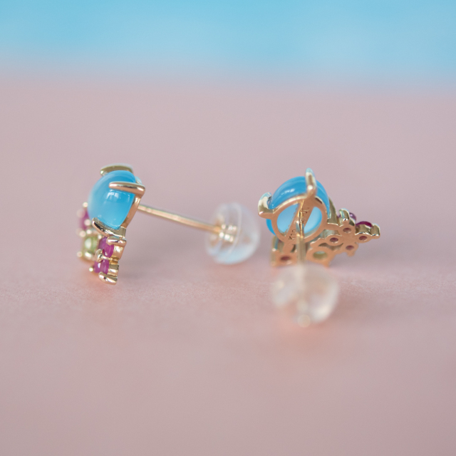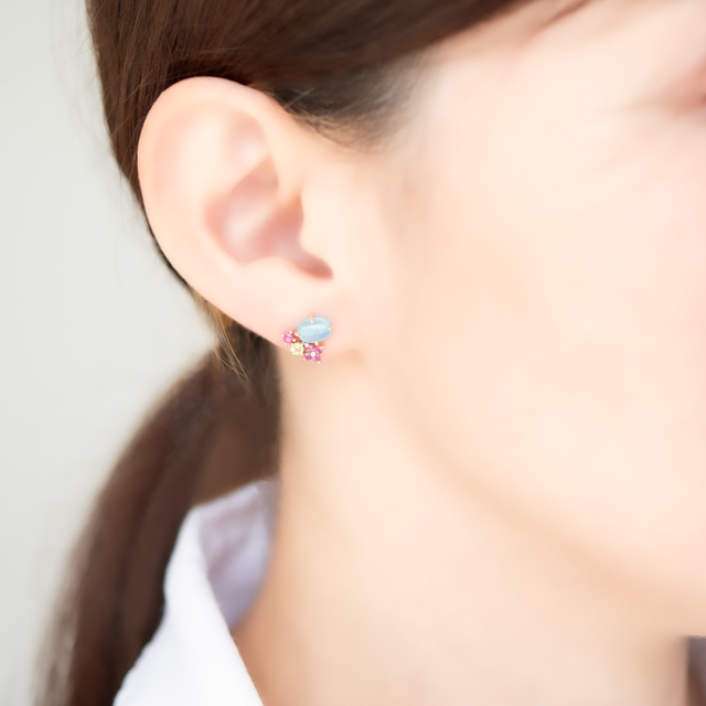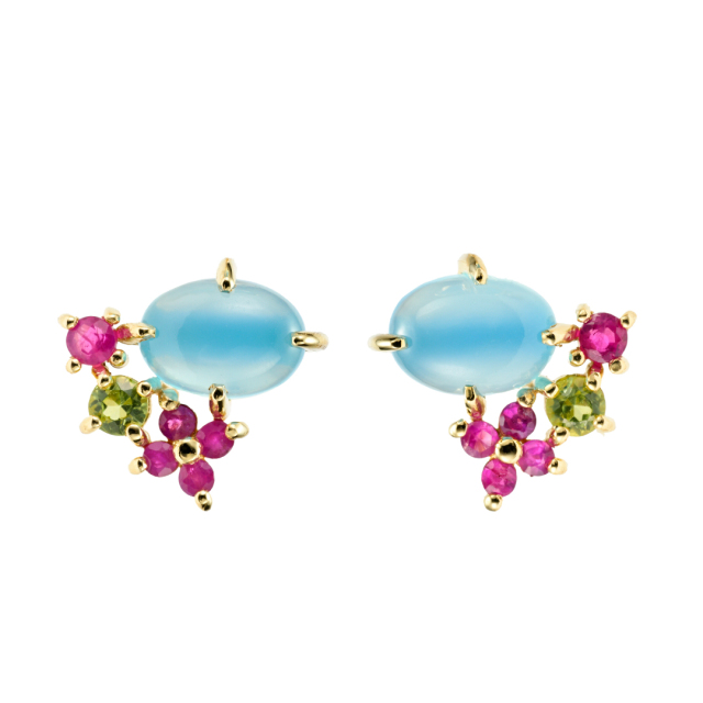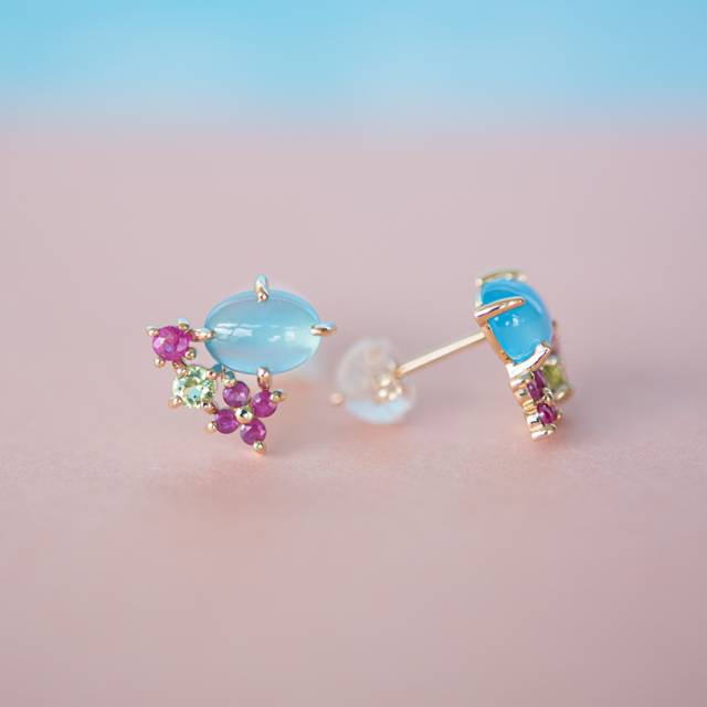 | 【素材】 | K10イエローゴールド/シーブルーカルセドニー/ルビー/ペリドット |