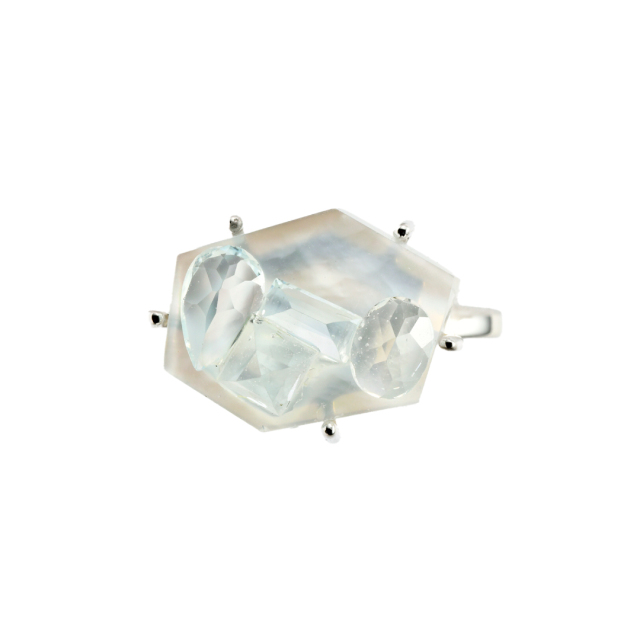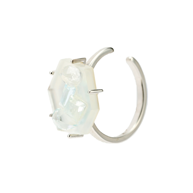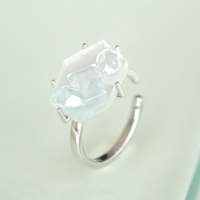 土台部分はクォーツとシェルを組み合わせてダブレットにし、真っ白な氷の奥行きを。