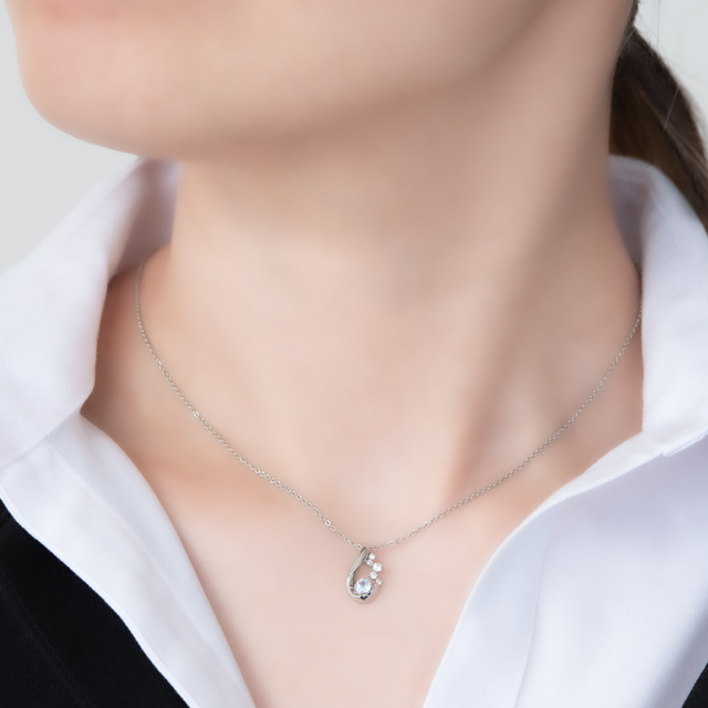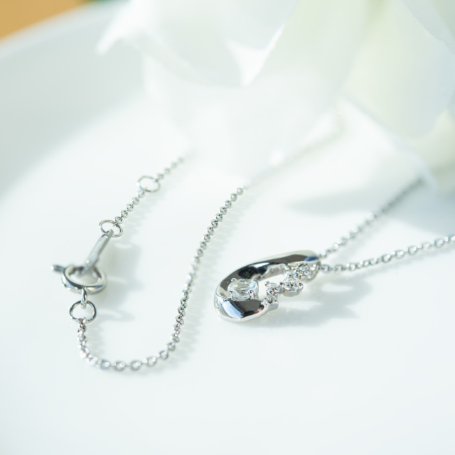流れるような雫の曲線に透明感あふれる淡いブルーが魅力的なアクアマリンと、キラキラと輝くキュービックジルコニアをセッティングした華やかなネックレス。