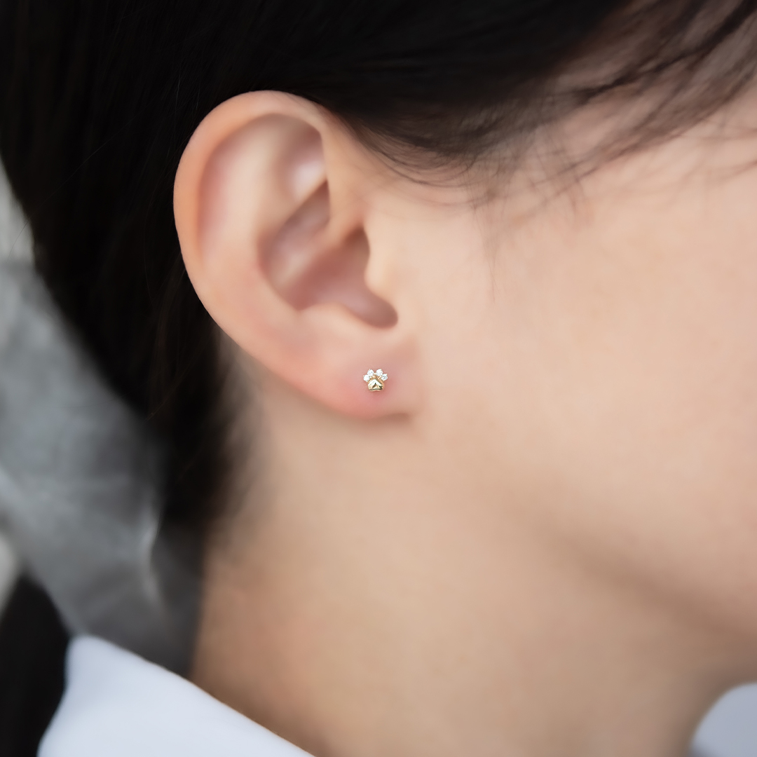 ころんとしたまるみのあるフォルムが愛らしい肉球モチーフのピアス。