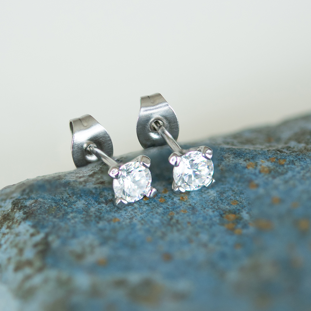 4mmのキュービックジルコニアが、光を受けるたびにキラキラと輝き、耳元にさりげないアクセントを添えてくれます。