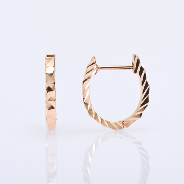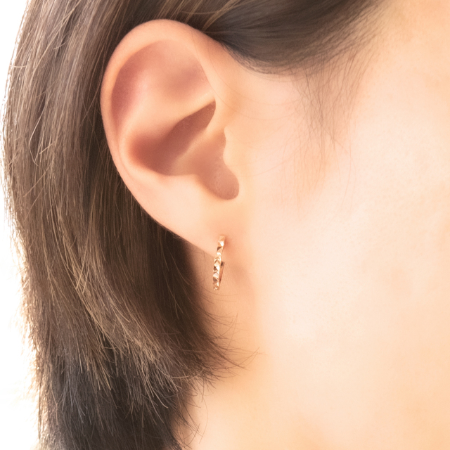 細やかで丁寧なカットが、様々な角度から光を取り込みキラキラと輝きを放つ人気の中折れピアス。