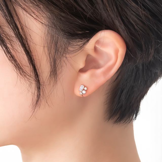 様々な形のキュービックジルコニアをセットした、上品で遊び心をプラスしたデザイン。